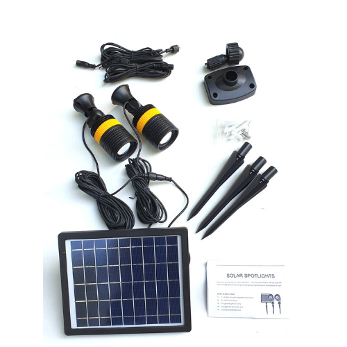 Without doubt, the best LED Solar Spot Light on the market today. The ATGS FULLY ADJUSTABLE Soft Cream High quality spot light perfect for lighting up gardens, lawns and pathways, around pools and barbecue areas. Being solar powered they are quick and easy to install - no wiring or expensive transformers and of course zero running costs. This is the only fully adjustable Solar Spot Light on the market. Set includes 2 spotlights, solar panel, ground spikes, wall mount for solar panel, extension leads, screws Adjustable beam - broad light up to 5m Square or to a concentrated beam and also 8 meters of cable length from each light back to panel to get that perfect location. With a total 240 lumens the lights will have enough power to last 2 full nights, after 1 day of full charge (with good strong sun). Water proof to IP65 On/Off switch